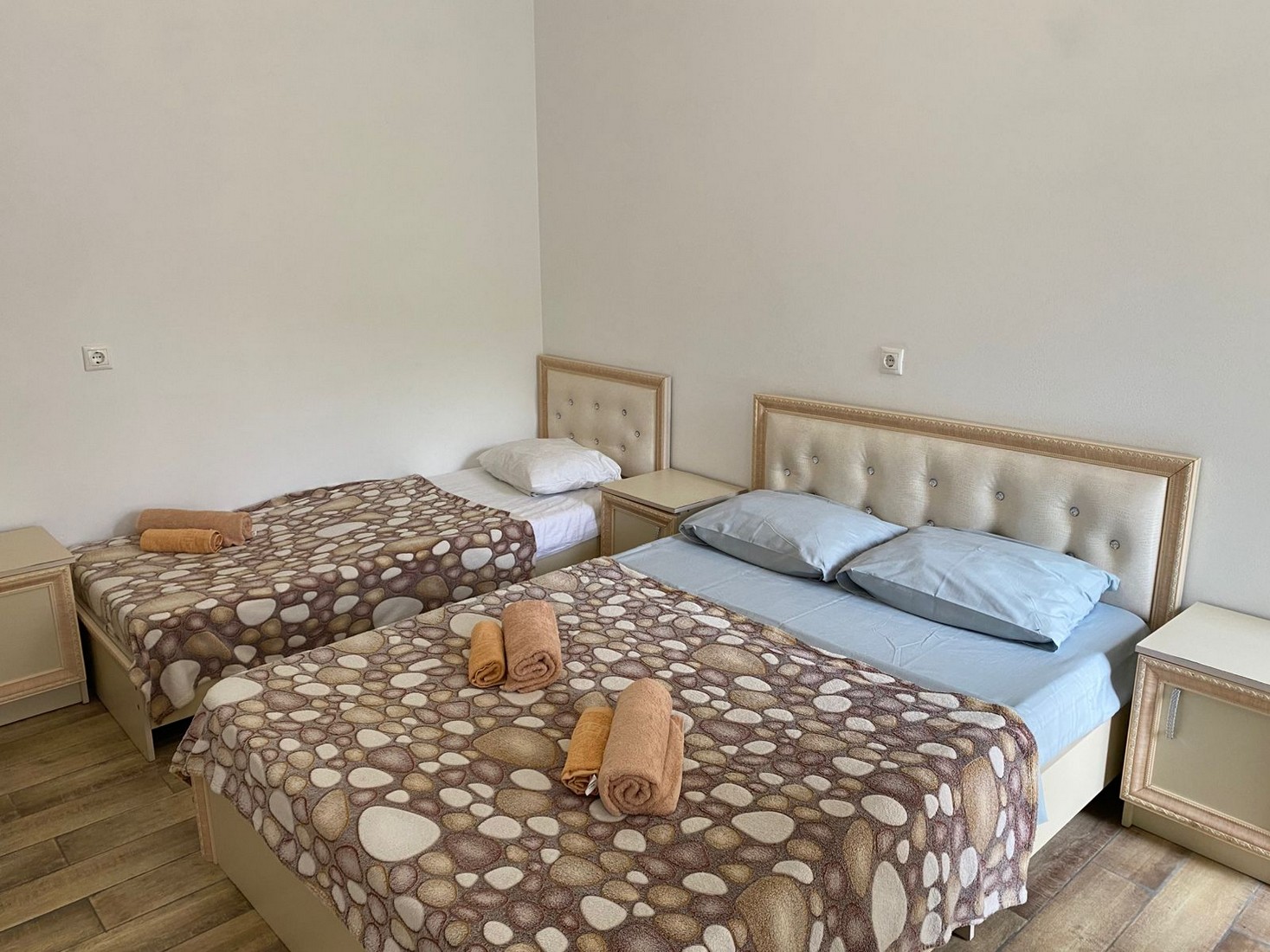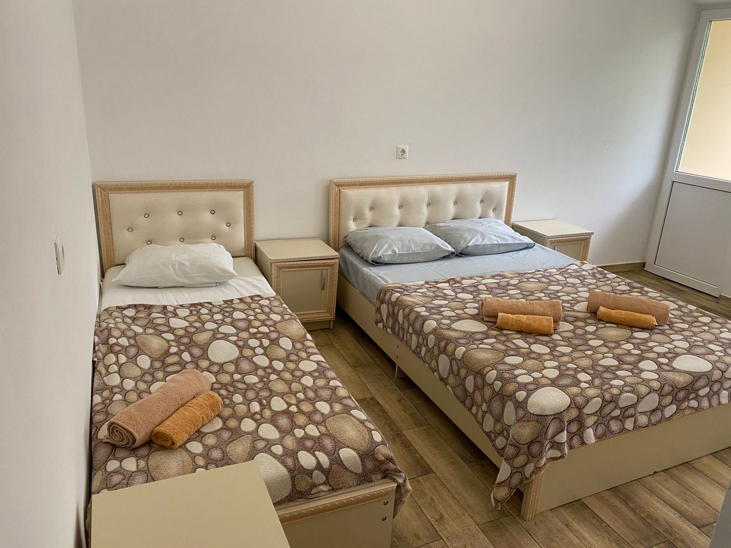 | Стандарт Стандарт 4-х местный | 20 кв.м. | 4 чел. | Балкон (с мебелью), Мебель (вешалка, зеркало, кровати односпальные, кровать двуспальная, стол, стуль... | |